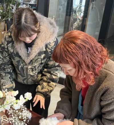 ホテル・ブライダル科は卒業制作として「模擬披露宴」を開催します。昨日、卓上装花とブーケの打合せと衣裳のフィッティングを行いました♪