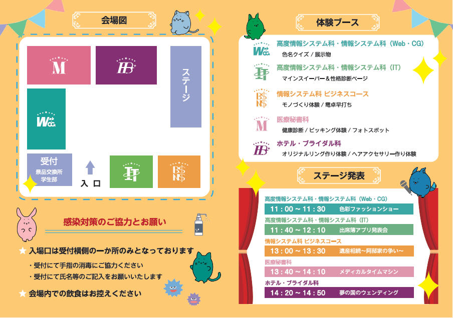「秋コア祭2025」では、各学科の体験ブース・ステージ発表、全体イベントとして「謎解きスタンプラリー」など、ご来場者が本校を知っていただくイベントをたくさん企画しております。